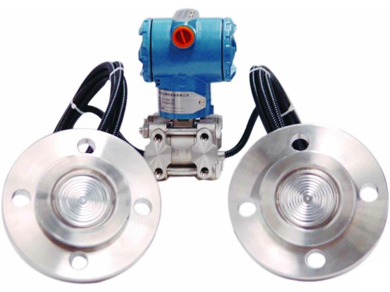 产品说明: 法兰式液位变送器被测介质的两种压力通入高、低两压力室,作用在δ元件(即敏感元件)的两侧隔离膜片上,通过隔离片和元件内的填充液传送到测量膜片两侧。