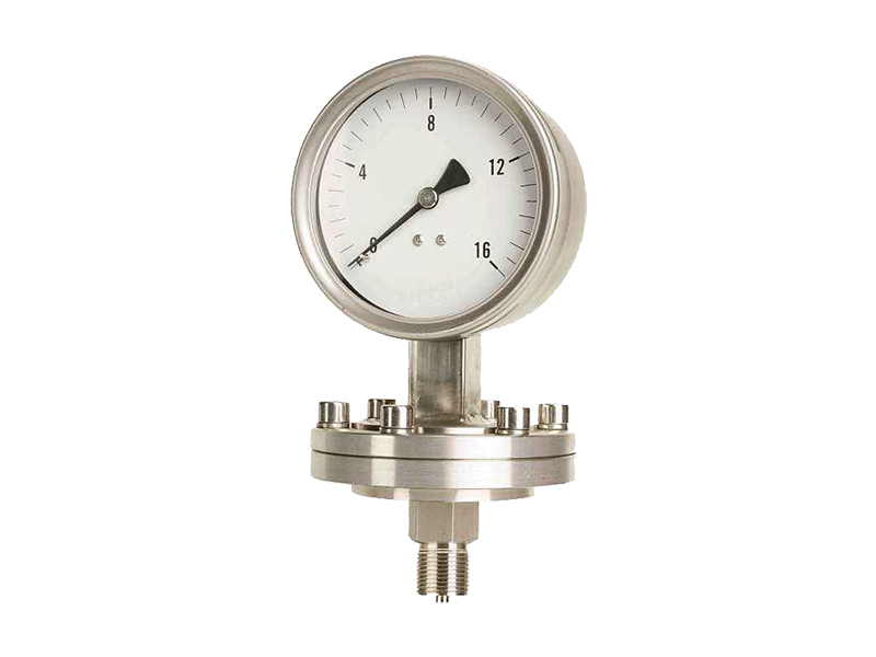 产品说明: 膜片压力表适用于测量具有一定腐蚀性、非凝固或非结晶的各种流体介质的压力或负压。 膜片压力表适用于测量无爆炸危险、不结晶、不凝固、有较高粘度,但对铜和铜合金无腐蚀作用的液体、气体或蒸汽的压力。 主要技术指标: 相对湿度不大于90% 温度影响:使用温度偏离20±5℃时,其温度附加误差不大于0.04%/℃ 外壳防护等级:IP64 标度范围、外形尺寸及重量